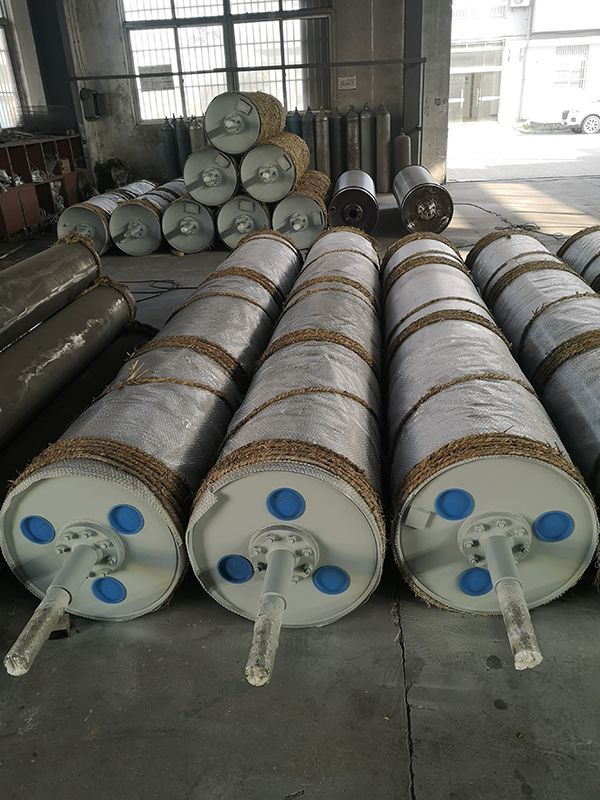 不銹鋼烘筒使用的加熱蒸汽,由蒸汽總管通入烘燥機的空心立柱(或槽式矩形立柱旁邊的蒸汽管),分別引入各只不銹鋼烘筒。